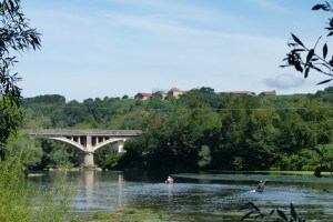 We are paddling downstream, with help from the current that occasionally rouses itself to move briskly. The river is mostly very shallow, and we must watch for shoals that cause us to run aground. But that is about as hard as the paddling gets. Tim & I put on our best Canadian form. We have a reputation to live up to. We are representing all of Canada! But somehow using plastic paddles in a plastic moulded canoe doesn’t evoke the same elegance of a cedar strip and we slow our pace and ignore our style, laughing at the wonder of floating down the Loire.