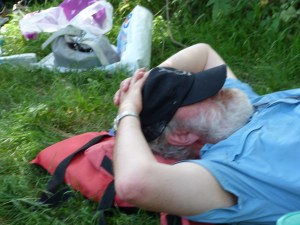 After 1 ½ hours of gentle paddling, we arrive at the picnic place. The rest of the party have only just arrived and are amazed that we caught up so quickly. We beam as we unpack. Suzanne and a couple of the other wives arrive with the lunches. They don’t join us on the river, preferring instead to be responsible for the food preparation and clean up. We spread our blanket under the shade of the trees and begin the feast.