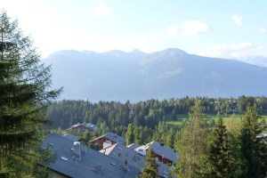 Tim & I arrived in Sierre knowing that we would have to take a bus or a Funicular to the hotel, but not really understanding that the hotel was in an entirely different town halfway up the mountain. In fact, we were staying in Crans Montana, a resort community dedicated to golf in the summer, skiing in the winter. The bus ride to Crans Montana was a harrowing experience to say the least – barreling along narrow switch back roads with a bus driver that clearly knew no fear. We zipped up the mountain, to 1500 meters above the Rhône River valley.