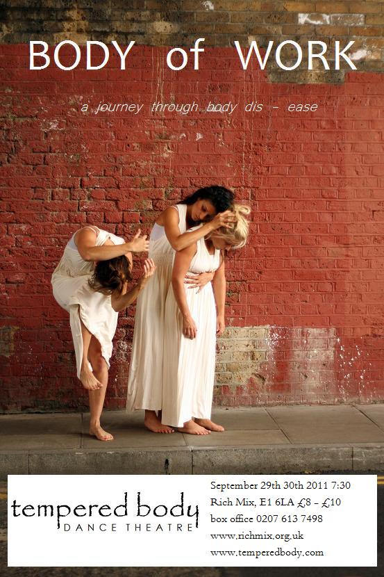 On Thursday, we went to watch a Tempered Body Dance Theatre rehearsal. The company was rehearsing in a studio at the Chisenhale Dance Space, in East London, where our daughter Maddy is artist in residence. As we approached the converted warehouse we heard two people standing out on the third floor fire escape, rehearsing a Shakespearean scene. Clearly we were in the right part of town.