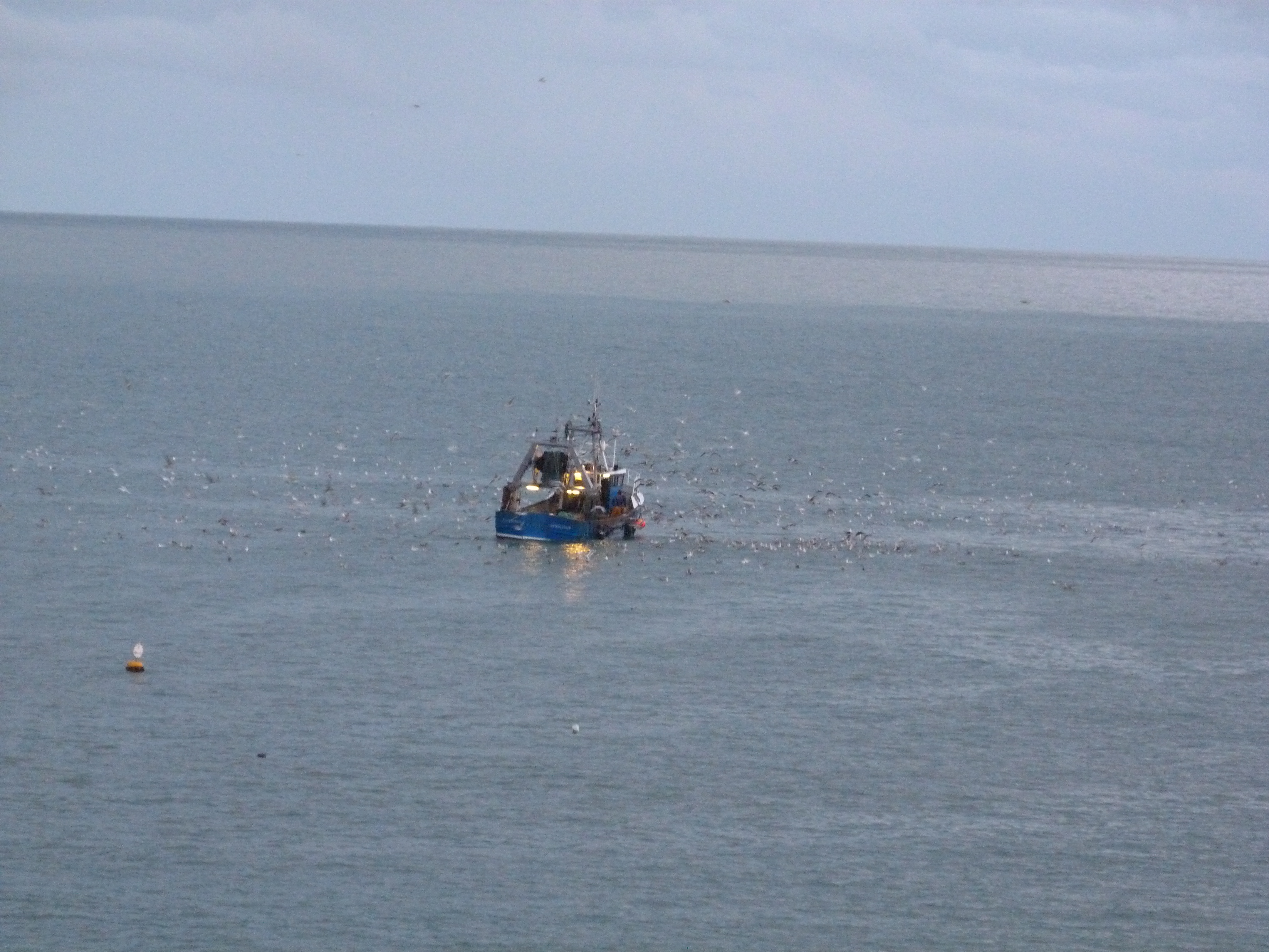 The early evening tide was very high, the fishing boats were coming in laden with mackerel and accompanied by masses of seagulls.