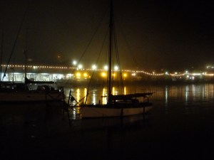 For dinner we went to Annie’s favourite, The Grain Barge, a ship converted into a pub. We sat on sofas on the deck of the ship and looked over the harbor, watching the evening lights come on and a crescent moon sink under the horizon. “Gert Lush”, which is Bristolian for “Really Good”.