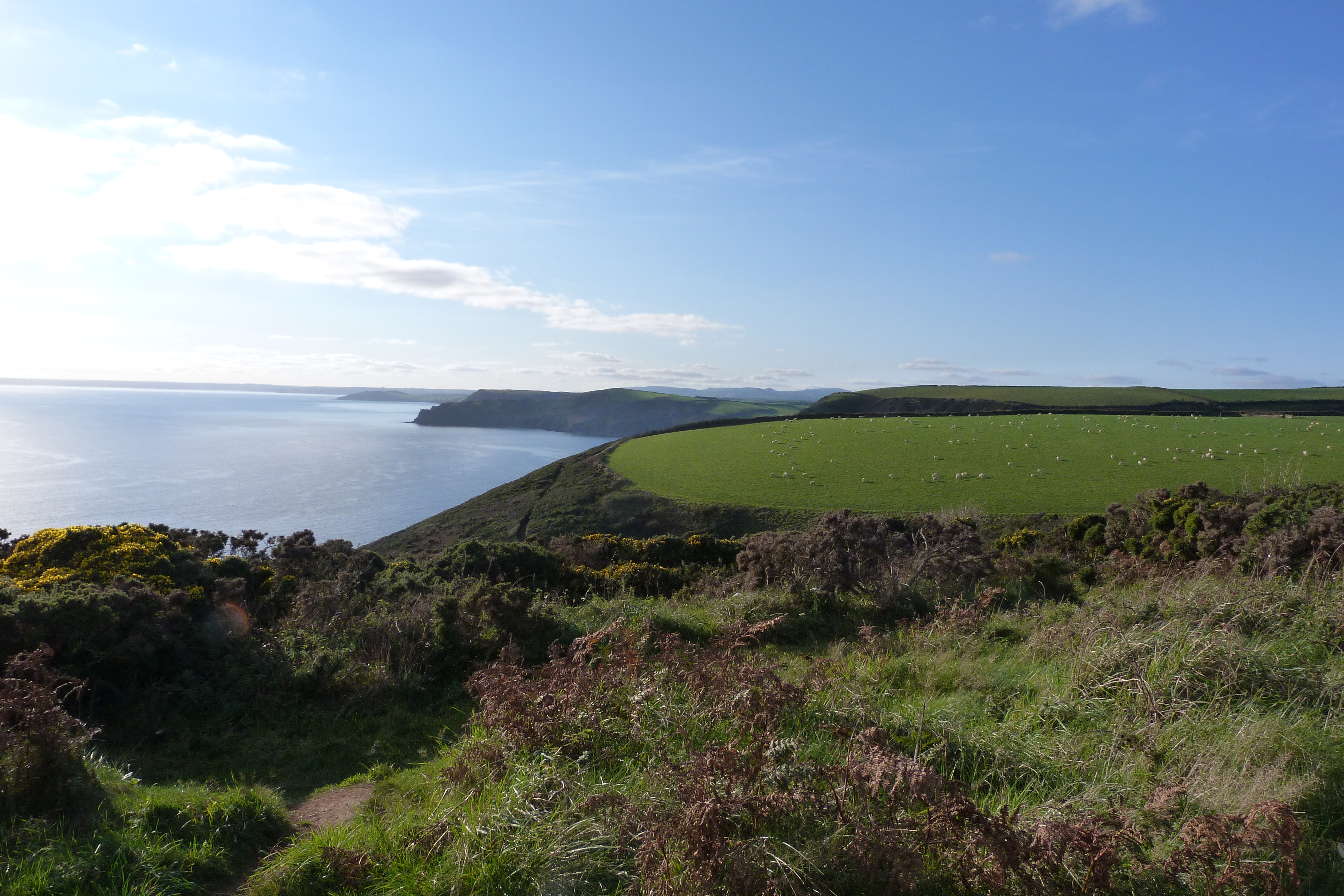 We meandered through fields of cattle and yellow flowered gorse bushes (said to flower every month of the year), passing the occasional dog walker and being passed by more serious hikers and making sure to stop and breathe in the sea air.