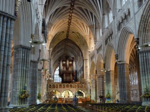 From Exmouth, Mal & Elspeth took us to Exeter where we were to meet up with cousins Penny & Eric. A trading town since 250 BC, Exeter, like Plymouth, suffered greatly during bombing raids in the Second World War. Recently however, the downtown has been revitalized and is now a great blend of contemporary and historical architecture. The downtown shopping district manages to incorporate the remains of the Roman wall, the 15th century St. Catherine’s Almshouse and chapel, and rows of well-preserved houses from every architectural period.