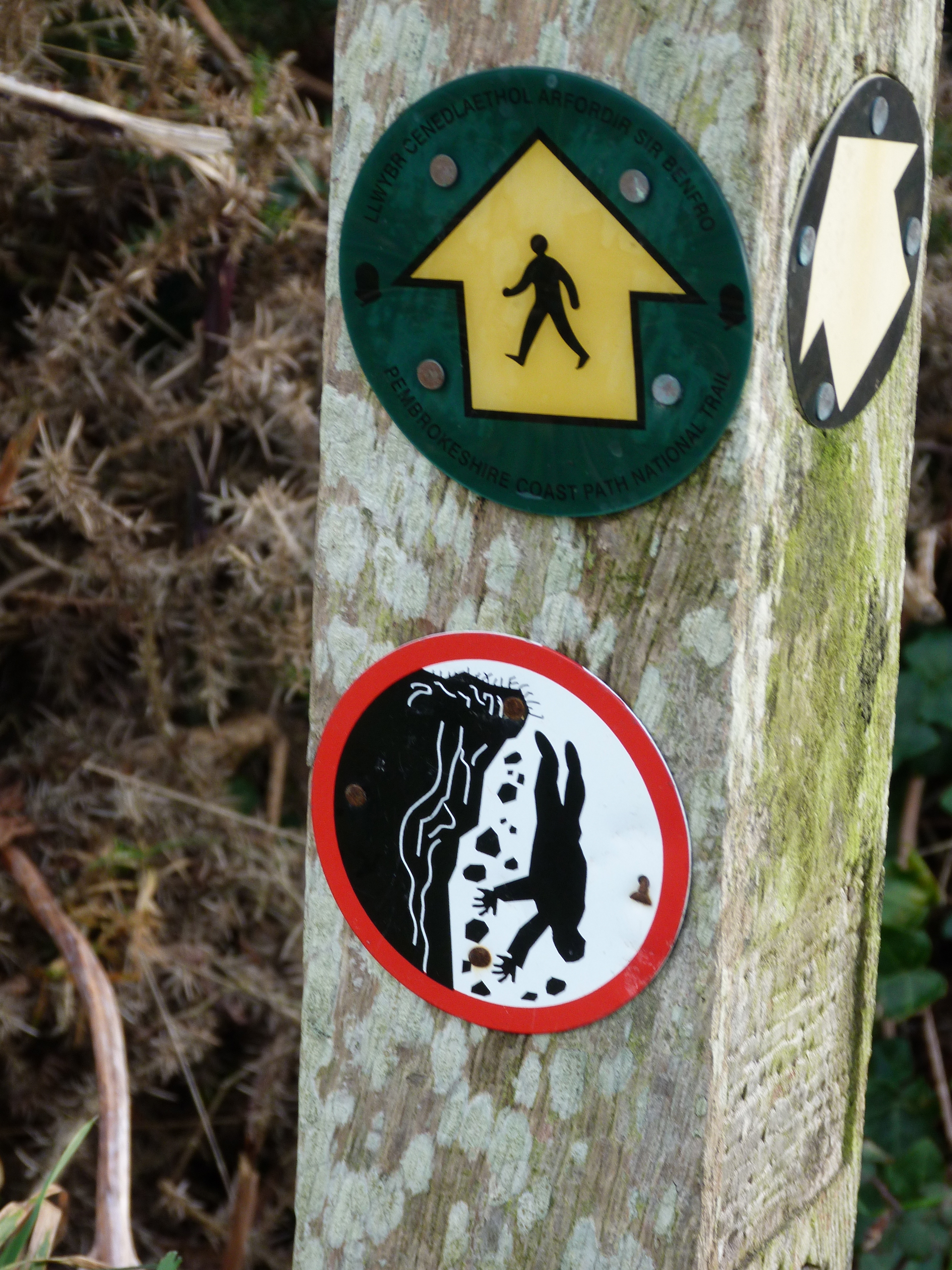 We began our first slightly rainy day with a visit to the superb tourist information centre. We picked up the path about ½ mile from the centre and found ourselves overlooking Caerfai Bay.