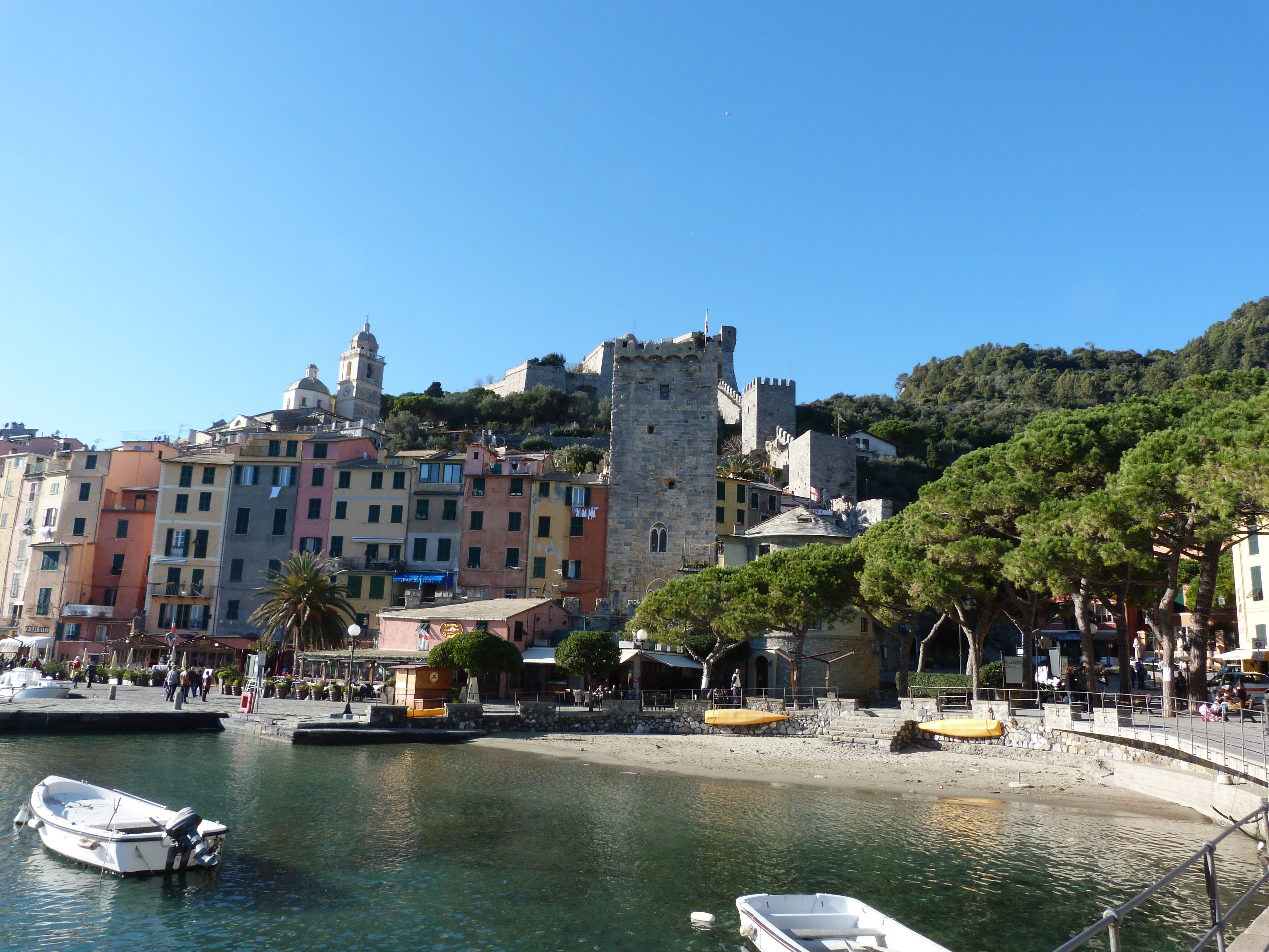 A piazza runs the length of the town, with restaurants spilling out into the sunshine. Fishing boats bob on the docks and ferry people over to the island of Palmaria, directly across from the town. It is a picture perfect Riviera town.
