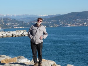 Tim on the dock of Portovenere, Lerici in the distance across the bay