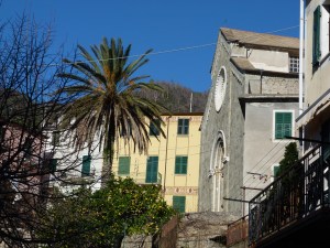 Corniglia has been famous for producing good wines since Roman days, and in the regular season there are tours and wine tasting bars. It was exquisitely quiet when we arrived, and much of the town was closed. We spent time in the sunshine in the main square, the Largo Taragio, centre of which spouts the old town well that used to bring in water from the hillside to the locals who lived without plumbing.