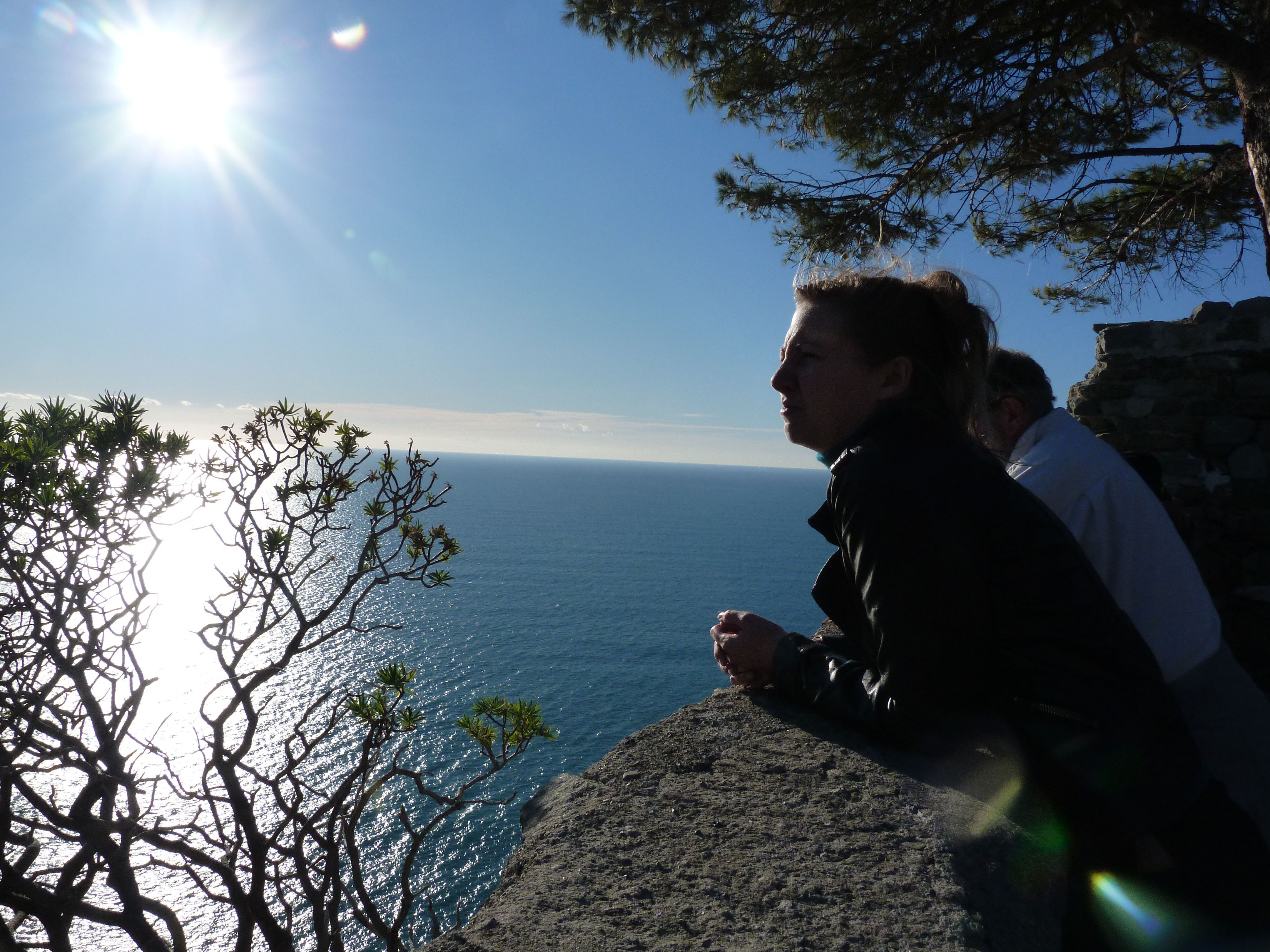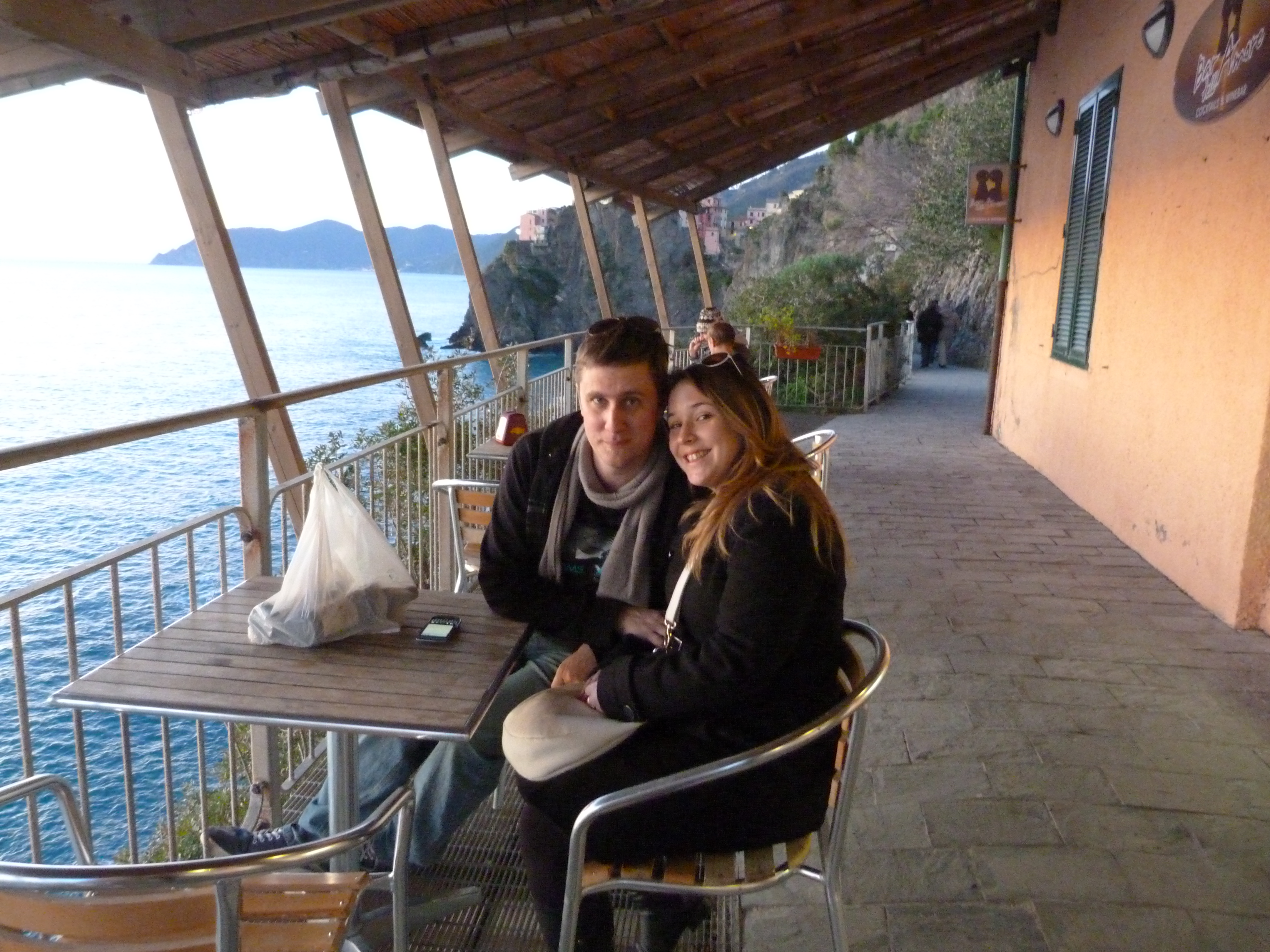 Maddy & Tim looking out from Santa Maria Belvedere in Corniglia
