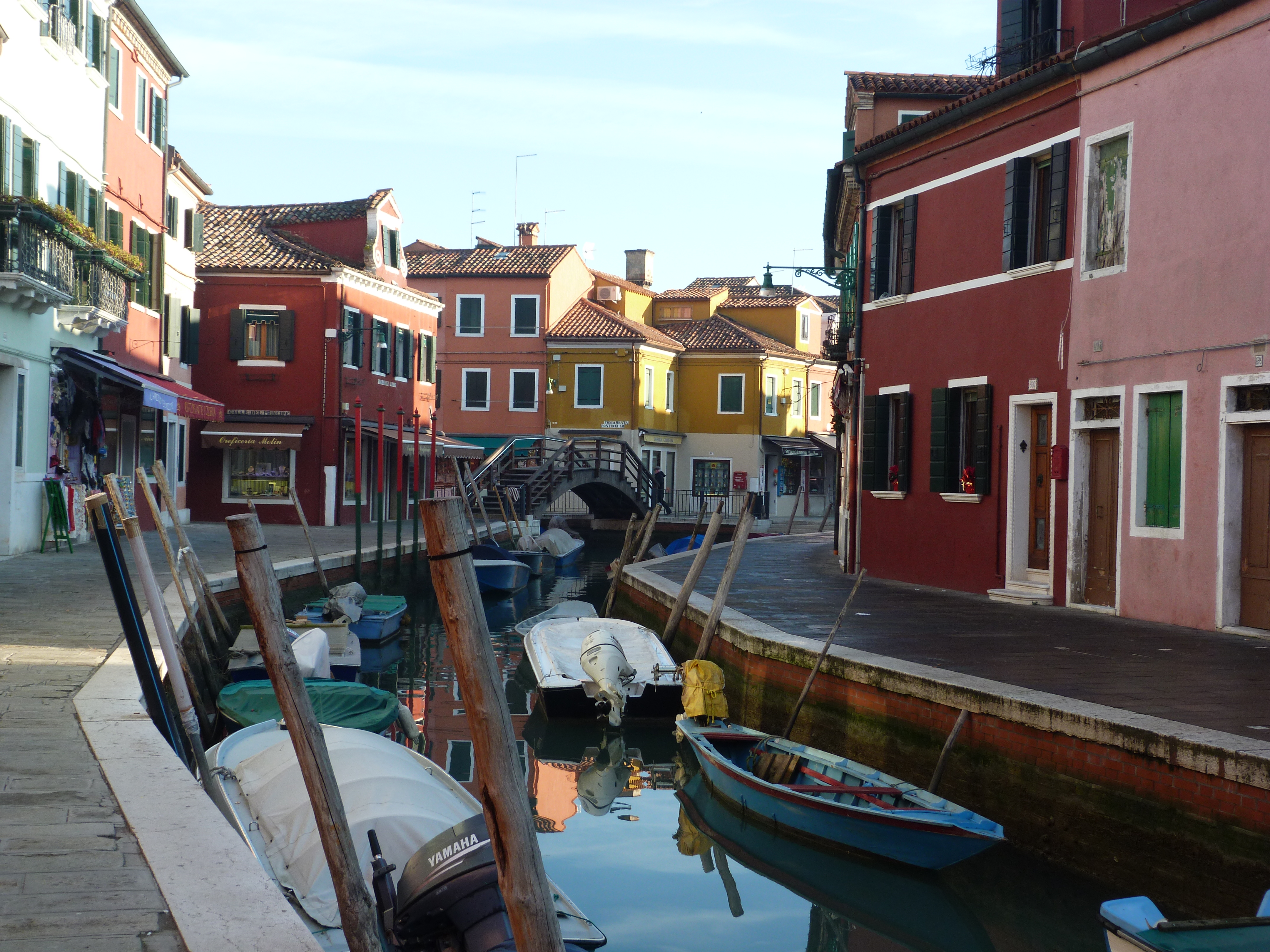 There are quiet garden plots, and little fishing boats. The 14th Century church of Santa Caterina still has its original bell, dating from 1318, making it one of the oldest in Europe. Apparently Winston Churchill, amongst many others, came here regularly to paint. Yet you can walk through Mazzorbo in about 10 minutes, cross the lovely wooden bridge and arrive at the island of Burano.