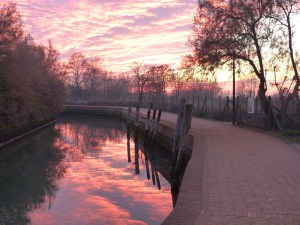 We walked back to the vaporetto dock into a magnificent sunset. We left the deep, murky mysteries of the lagoon and headed back on into the city, “the city of mirrors, the city of mirages, at once solid and liquid, at once air and stone.” –Erica Jong. We had travelled far.