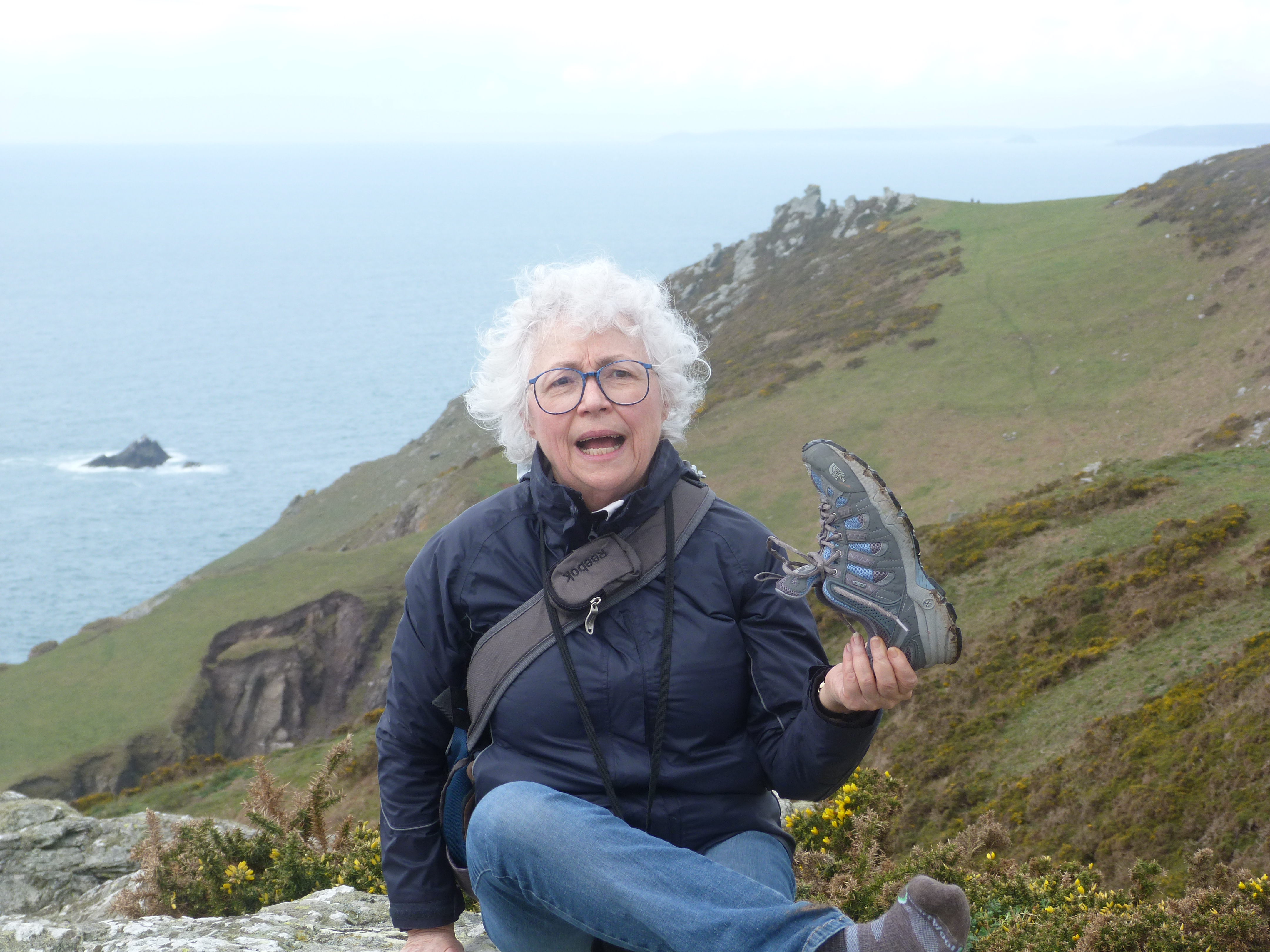 We huffed and puffed our way up to Bolt Head, the most southerly point of Devon. I clamboured out as far as I could go, well beyond Jan and Tim’s comfort level. I managed to take a picture of myself, on the edge.