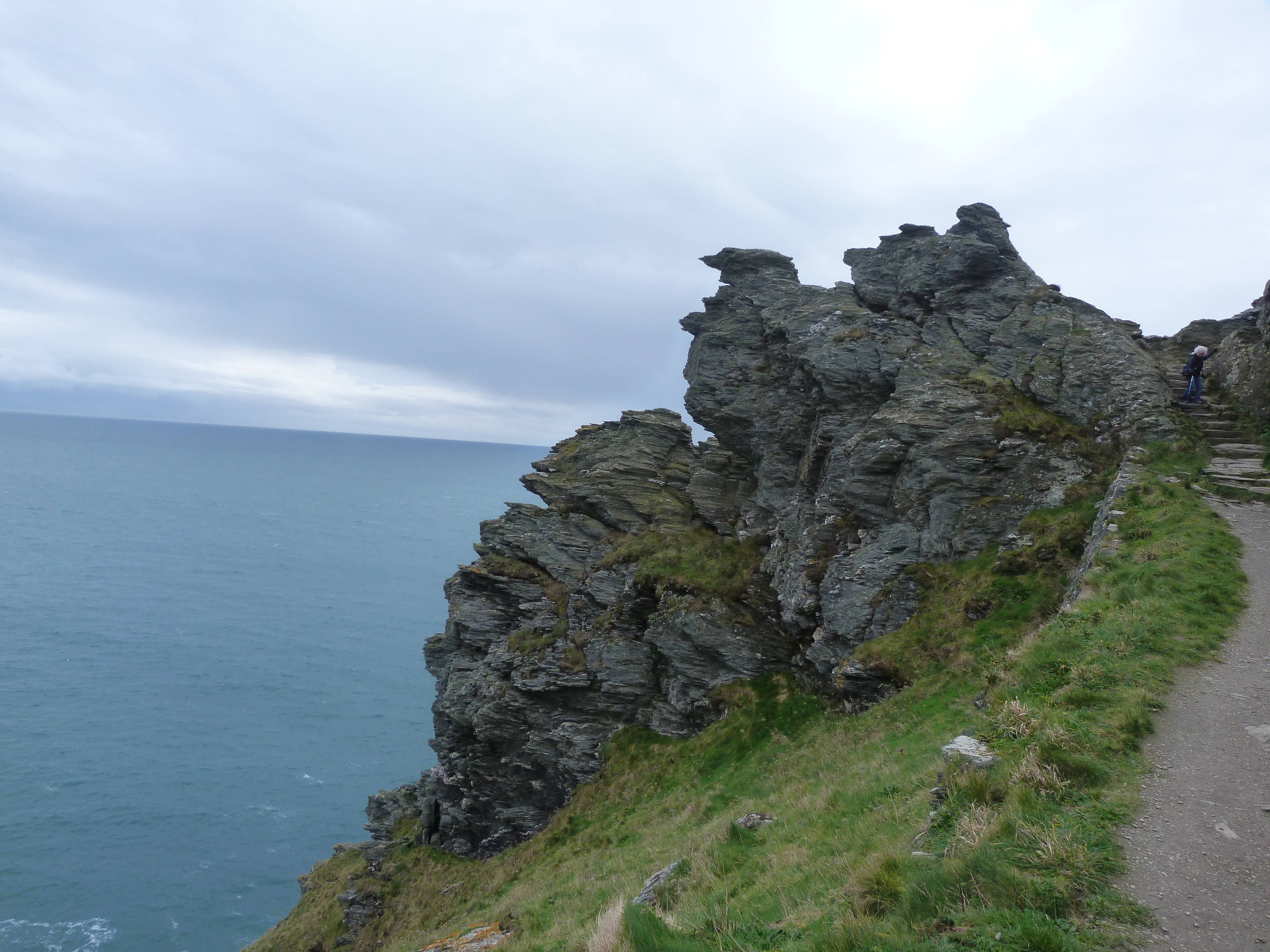 We burned our thighs up toward Wolf Rock and Bolt Tail, high above the water, crossing an Iron Age Fort embankment.