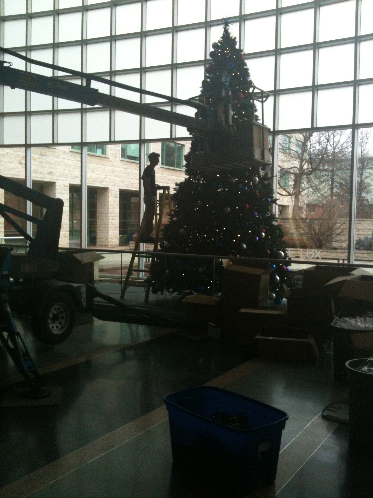 Lewis decorating the big tree