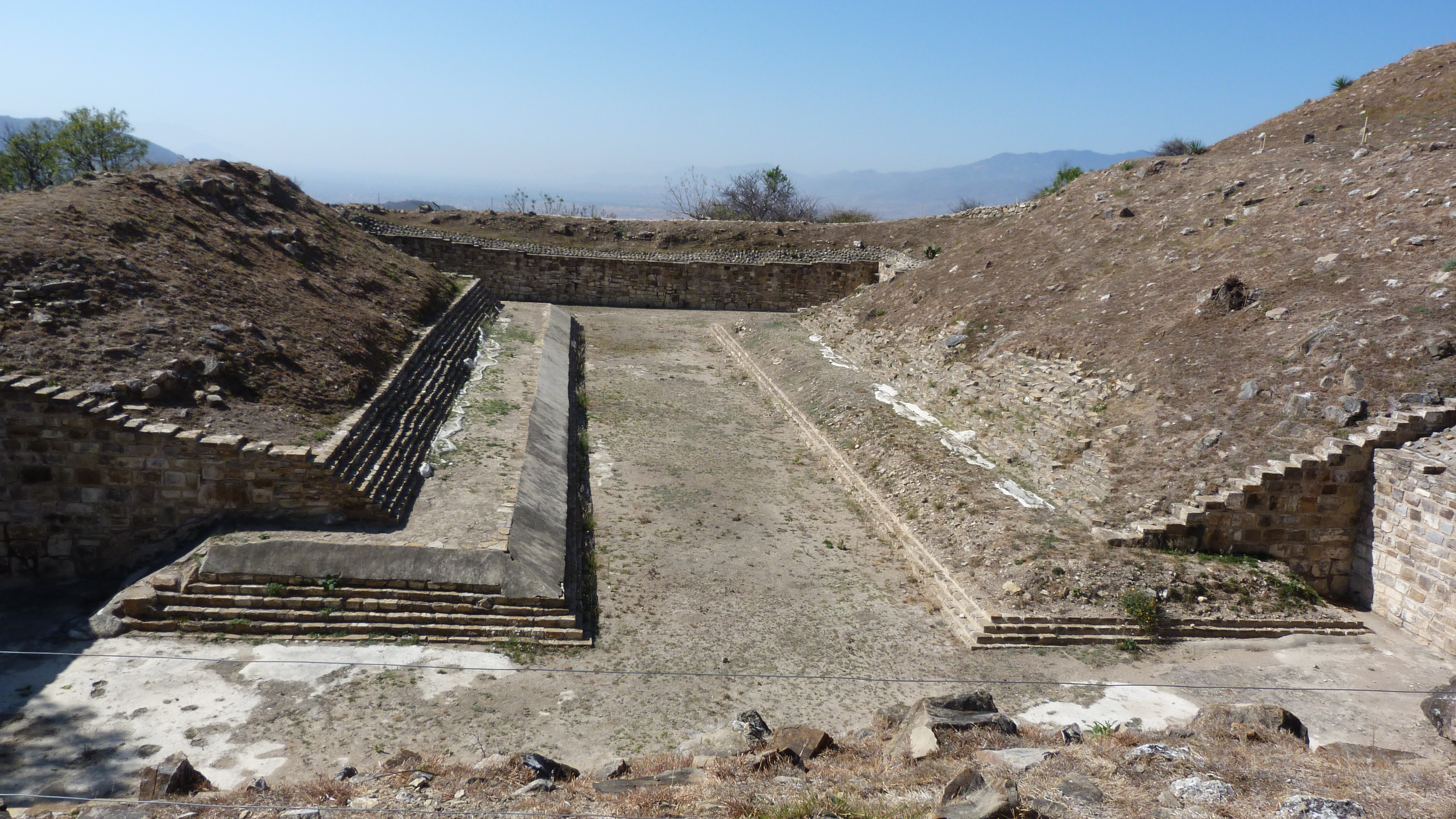 Atzompa was built in a similar style to Monte Albán, although scaled down. There are small plazas, a temple, a tomb with funerary chambers, an artisan’s area, a stone quarry, and a large ball court.