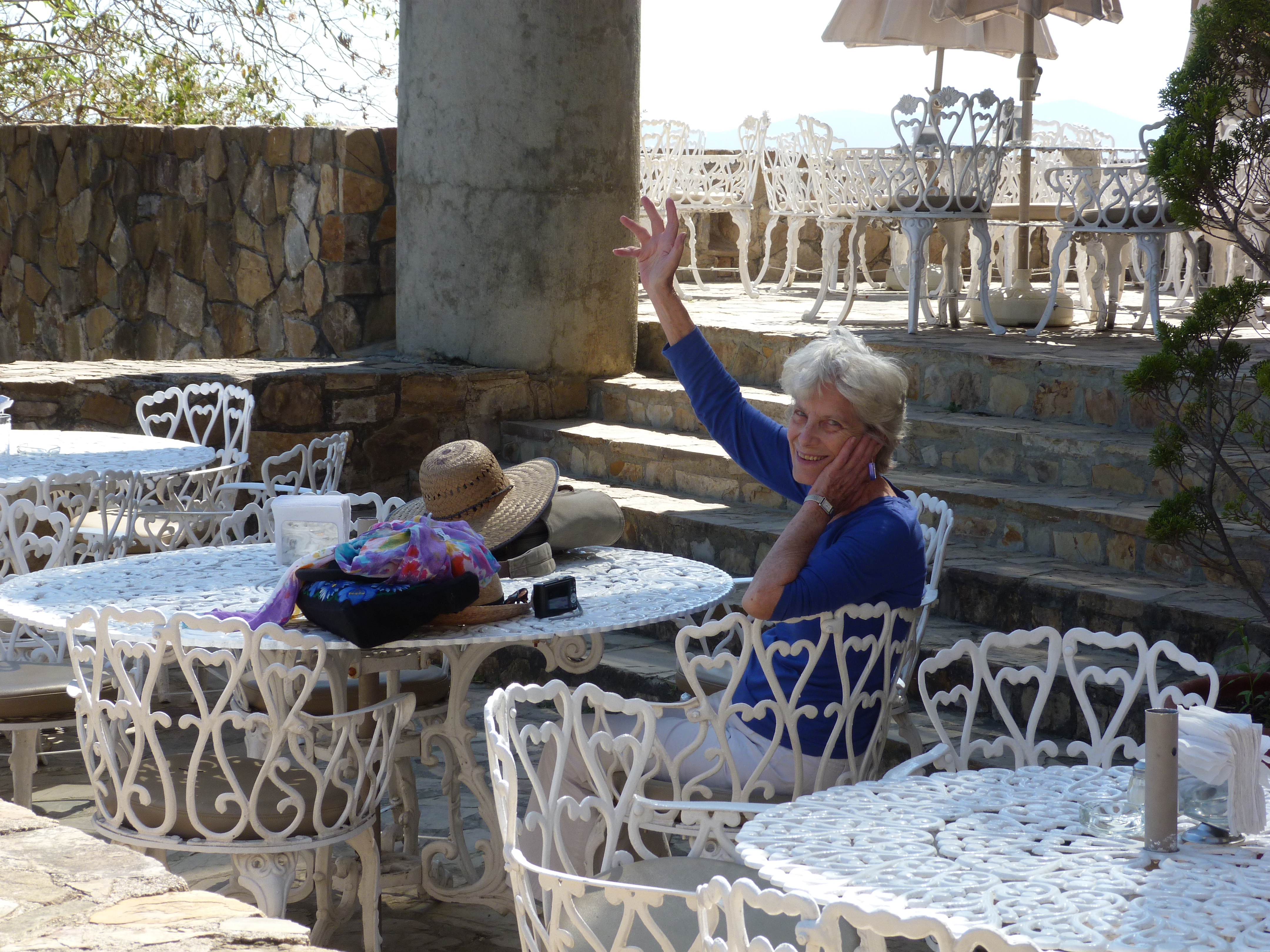 The mid morning sun is beginning to bake us. We gingerly make our way down the gravel paths, to find Vincent waiting patiently. We reluctantly leave the peace of Atzompa. Monte Albán, filled with tourists and school groups, beckons to us across the valley. Aztompa has become our shared secret, our own private discovery. Monte Albán is, as it should be, filled with the trappings of civilization. We head there for desayuno (breakfast) in a lovely outdoor café …