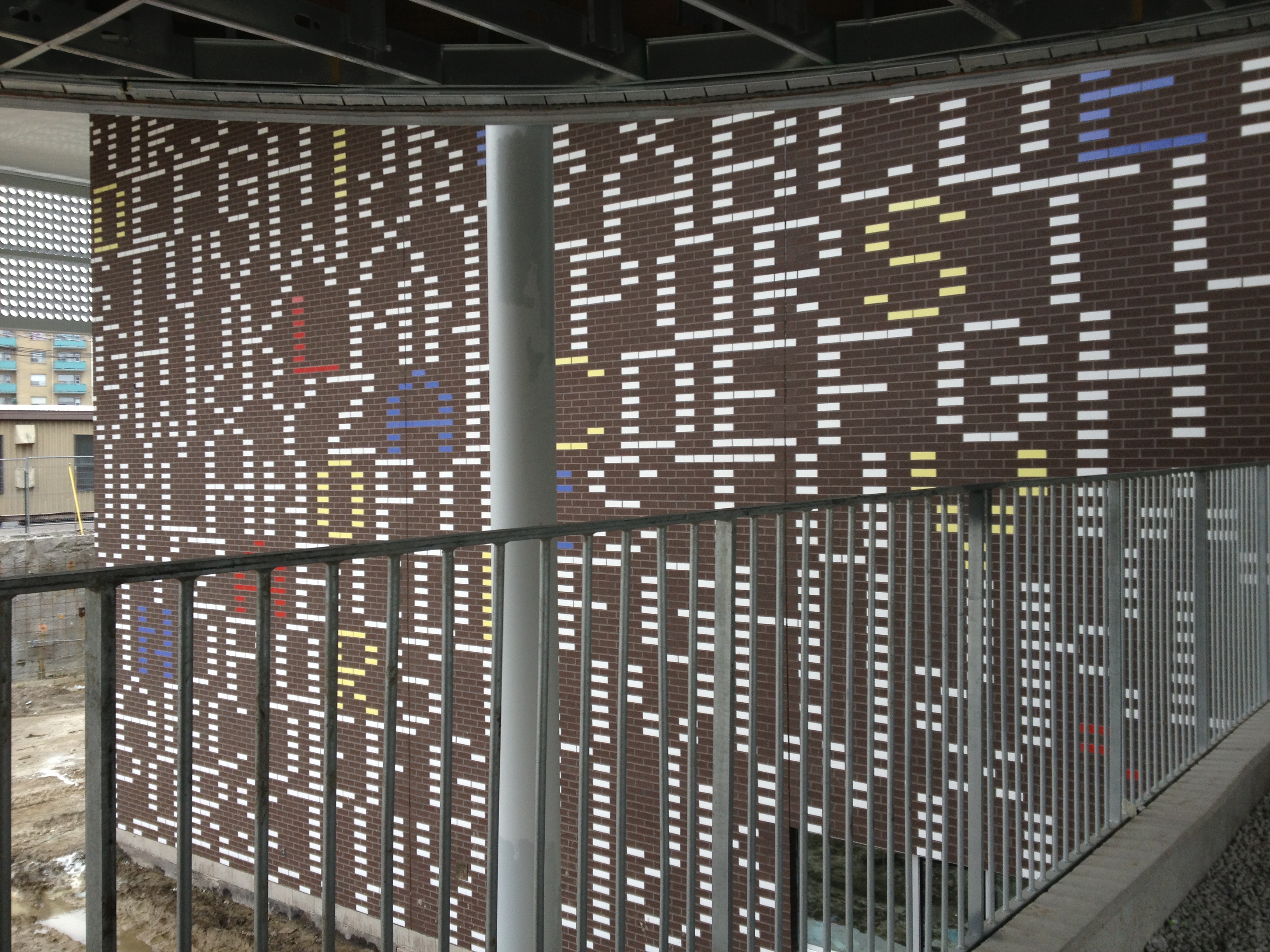 The outer wall of the new Fraser Mustard Academy. There's a hidden message in the letters...