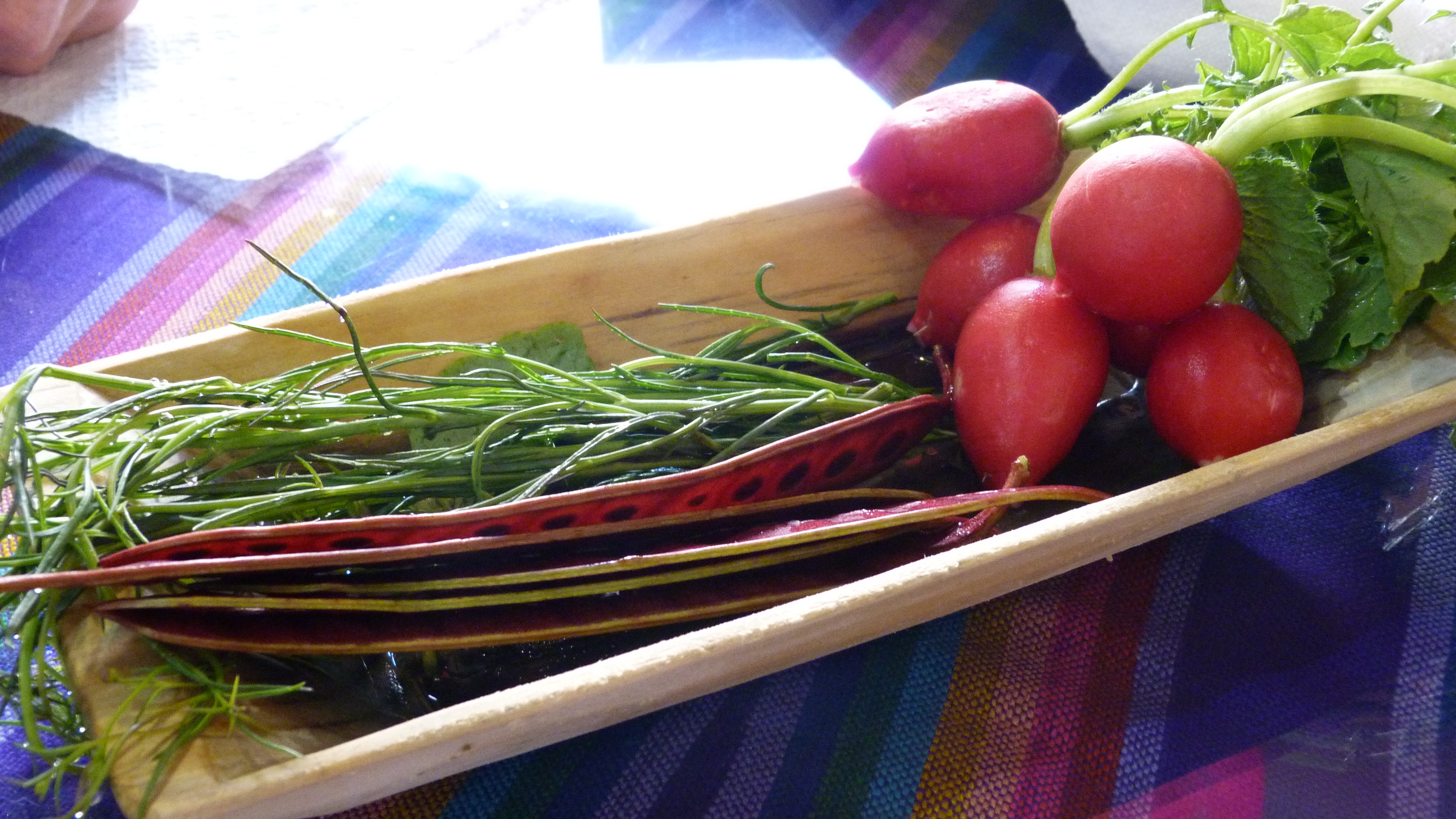 fresh radishes, Chepil and Huaje bean pods at Comodor Mary’s