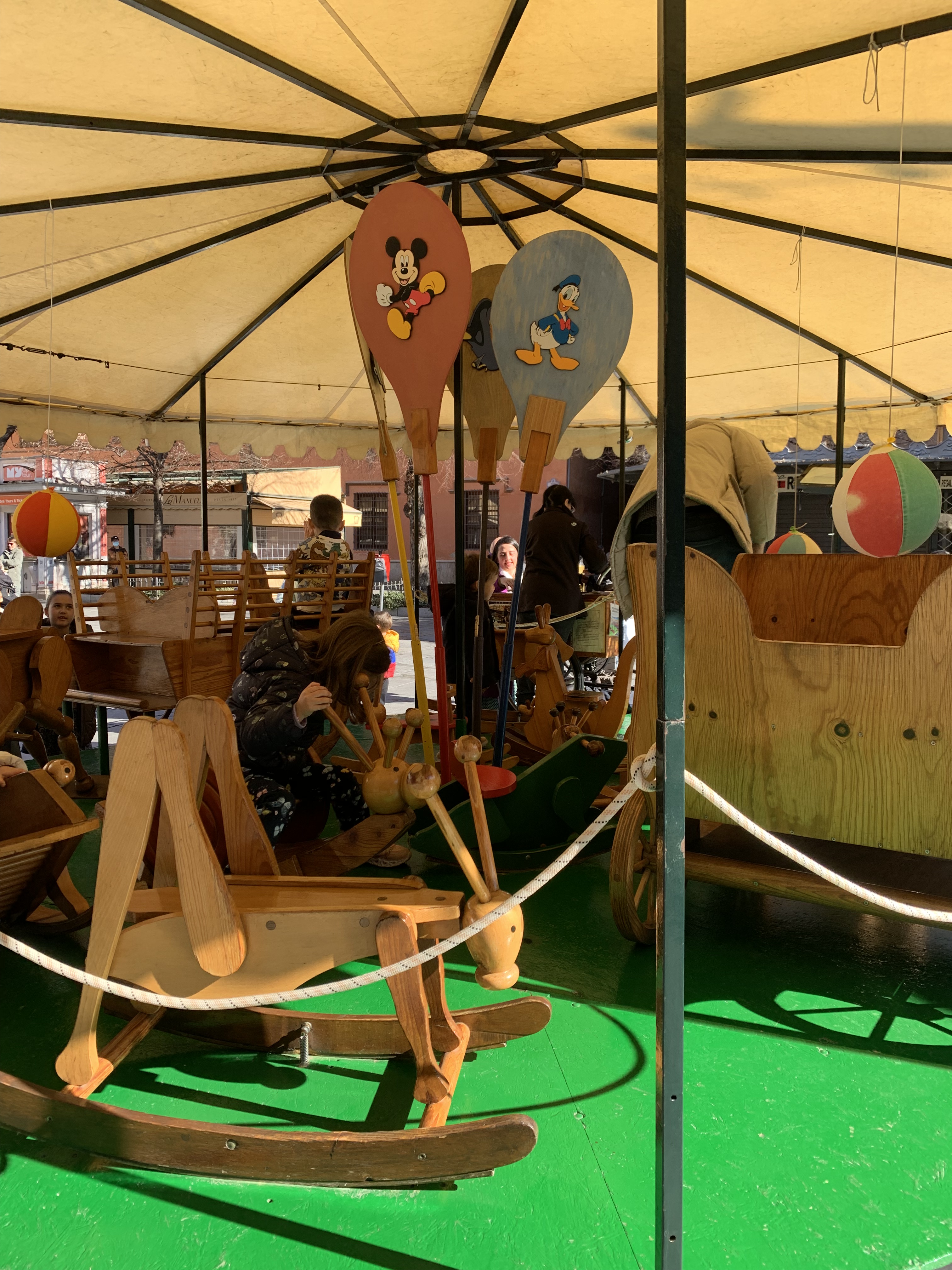 The centre of town has thoroughfares of dense traffic on spacious wide streets but leading off these are surprising narrow alleys that open out to plazas that feel like small villages. We found a children’s carousel made of wooden animals and powered by a man pedalling a stationary bicycle. An “eco-carousel.”