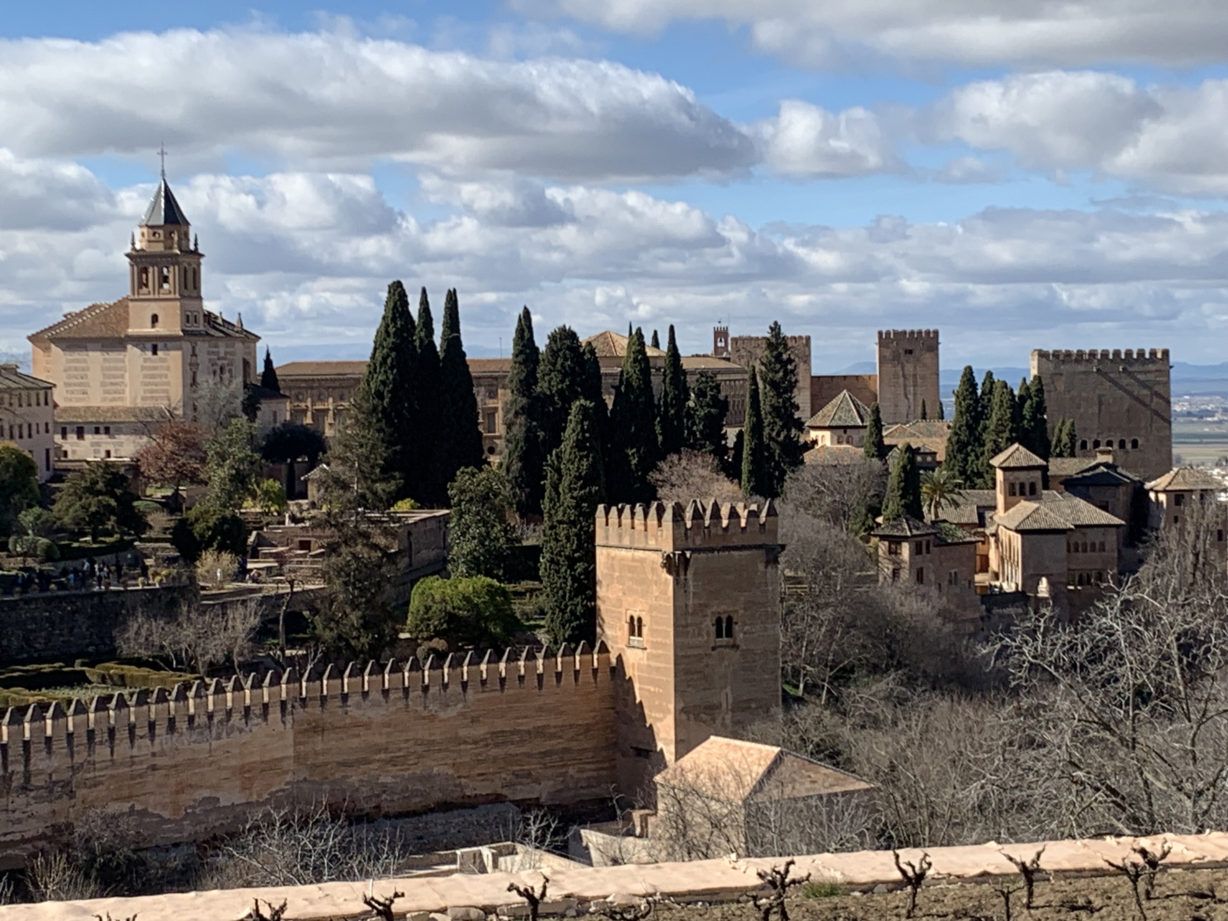 The next day was our day to go to the Alhambra. In the morning, we walked down (and down and down) into the city and were stunned when we got there to see how cosmopolitan it was. In front of the Cathedral we came across a red carpet and what was obviously a paparazzzi moment. We learned that the Goya Awards (Spain’s equivalent of the Oscars) were being held in Granada that night. That gave the city an additional sparkle of glamour for us.