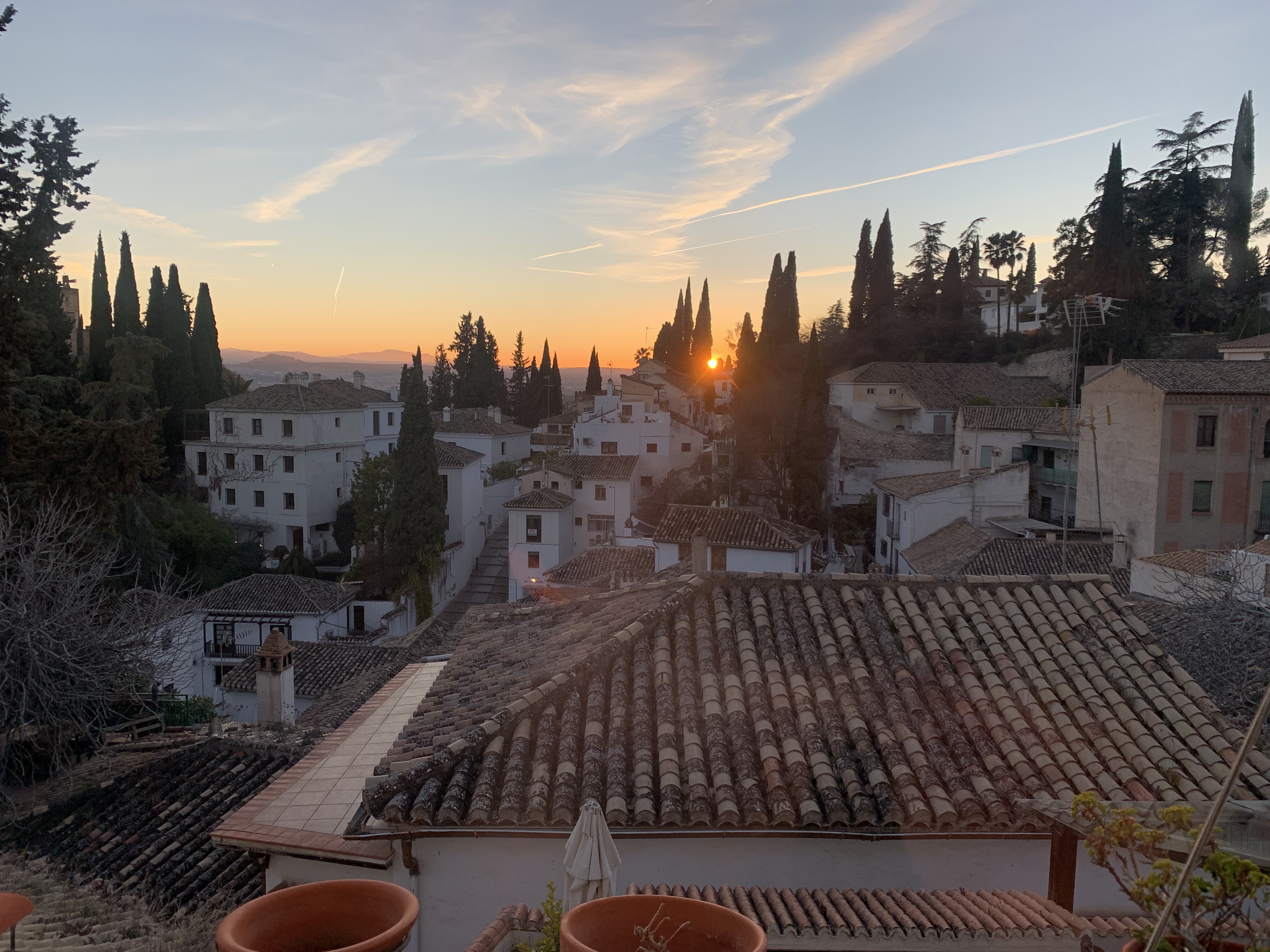 The main feature for tourism in Granada is the Alhambra, and that was why we went. I had no idea I would become so totally enchanted by the city and the culture. We had a magical room in a guest house, Solar Montes Claros, in a neighbourhood on hill above the city centre, the Albaicín. If we had done nothing else, the trip would have been worth it just to spend time there. Spacious and designed like something out of the Arabian nights, it overlooked the Alhambra and the city below with stunning sunsets.