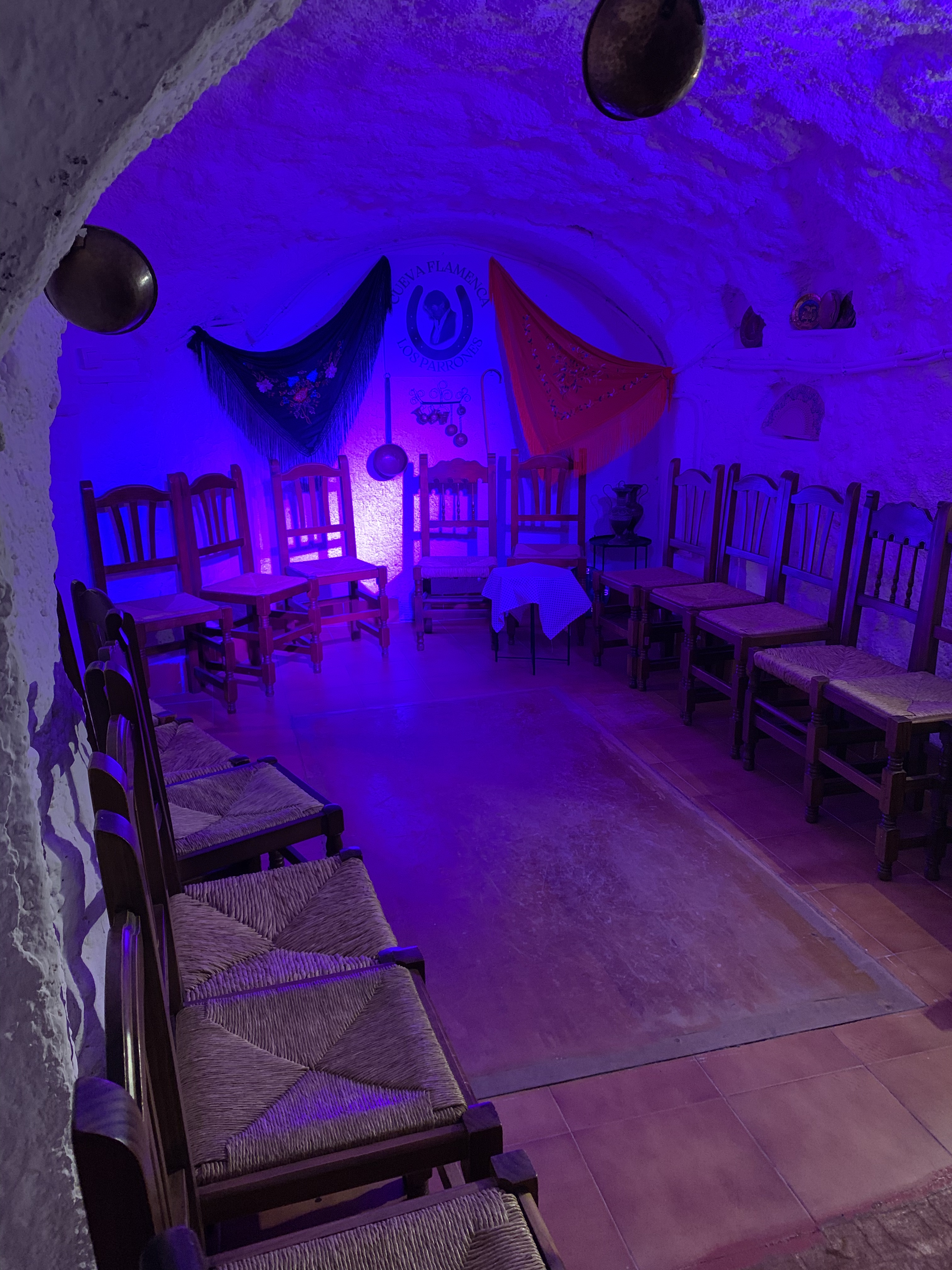 The caves are small, and those that are used for flamenco have a few chairs and tables and a small stage. If they are really small, they may only have a few chairs tucked along the sides of the cave. You can often buy dinner as well. A drink is always included.