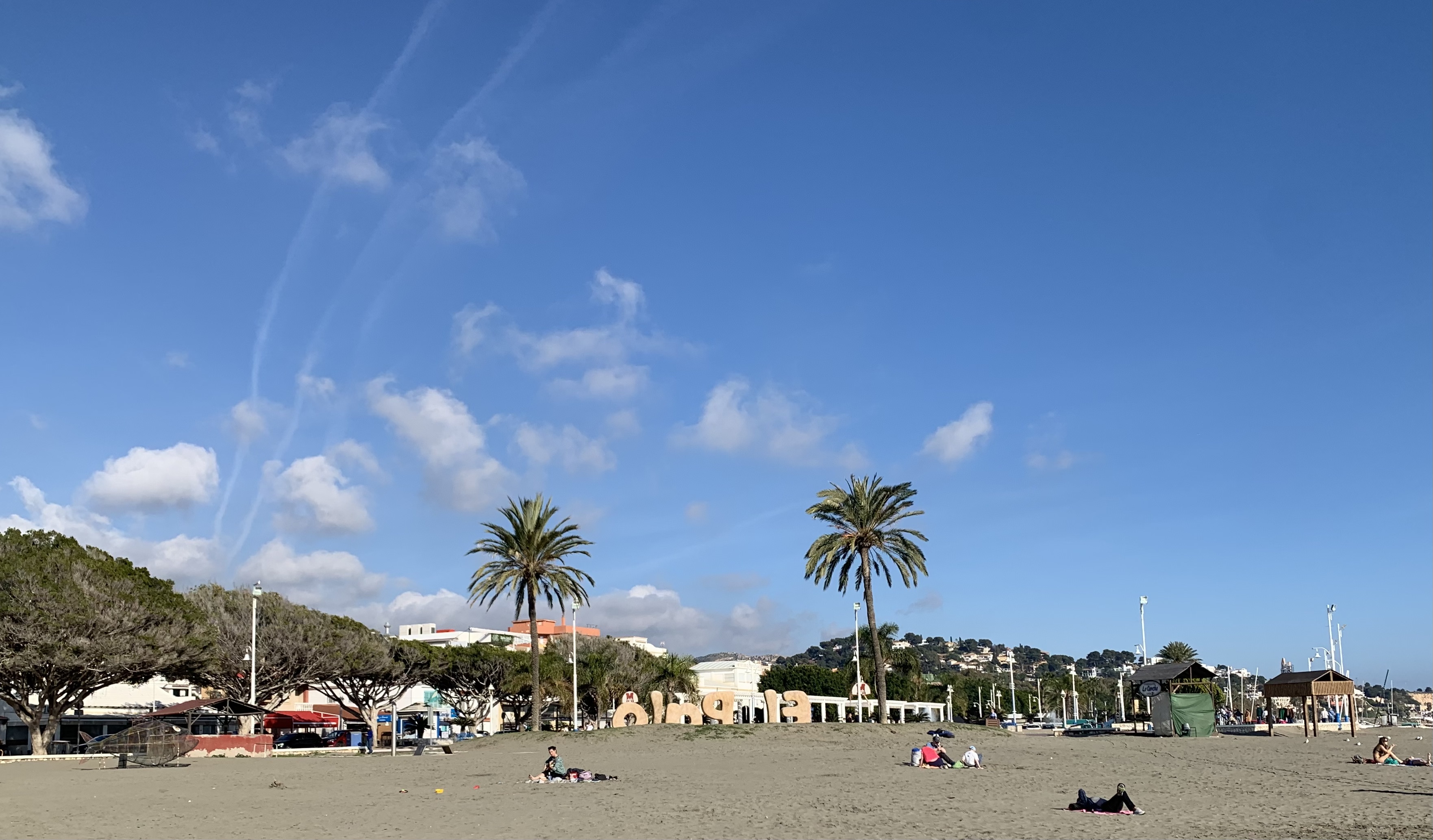 El Palo. You can see the large letters spelling El Palo backwards. There were only a few folks out relaxing on the beach.