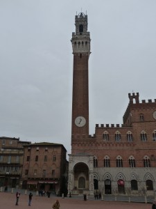 We had planned on climbing the famous tower, the Torre del Mangia, which overlooks the piazza. A great engineering feat in its day, the tower is 88 metres high. When it was built in 1338 it was was the tallest secular tower in Europe. It was named after the first bell ringer Giovanni di Duccio, who was nicknamed “Mangiaguadagni” which roughly translates as using all of his money to eat well. We felt an immediate affinity for him.