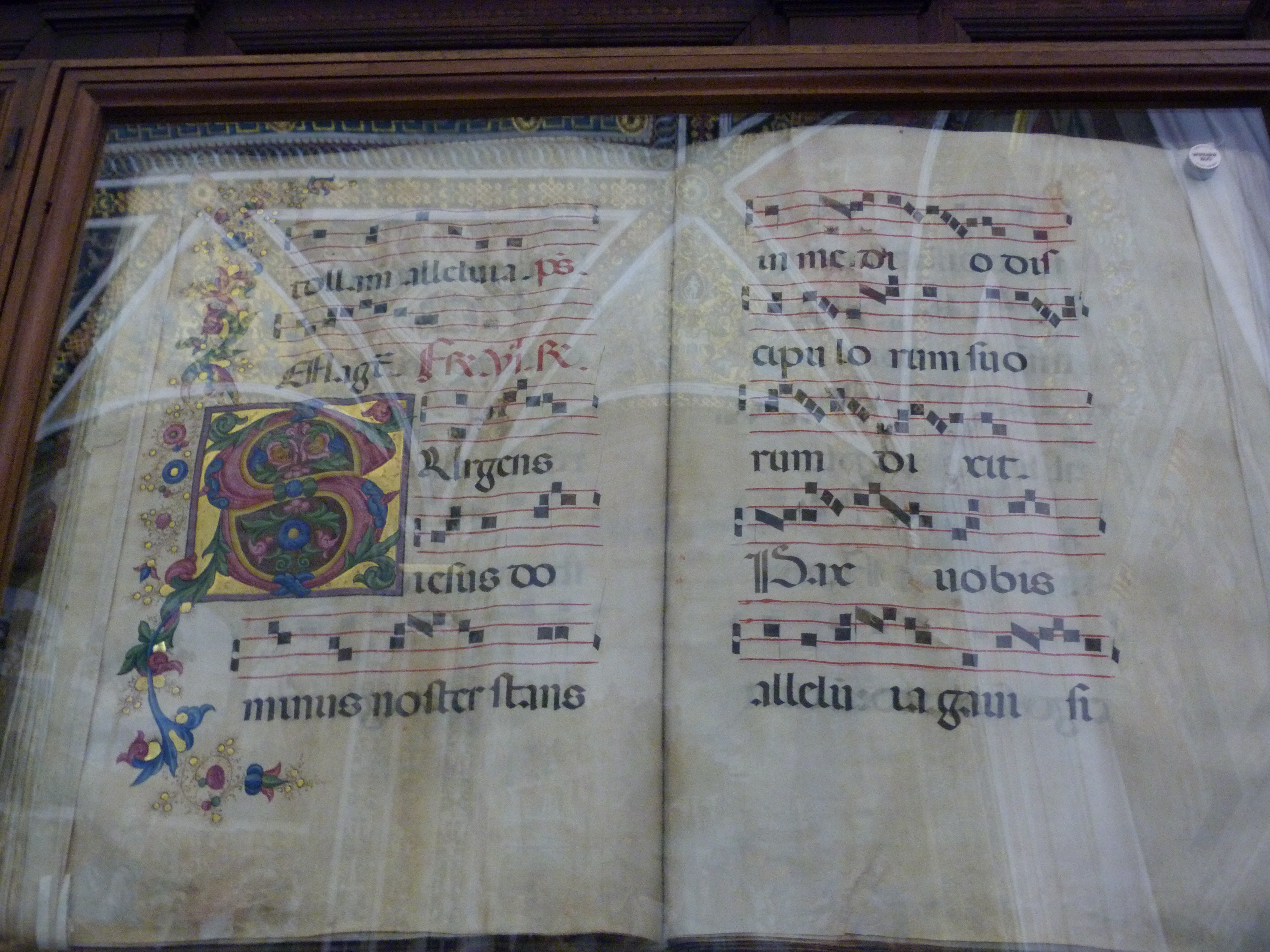 There is a small library attached, with a good display of liturgical manuscripts with gorgeous lettering and illumination.