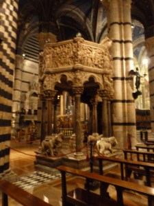 I particularly liked the Duomo’s marble pulpit, designed by Nicola Pisano in the 13th century, with four carved lions at the bottom.
