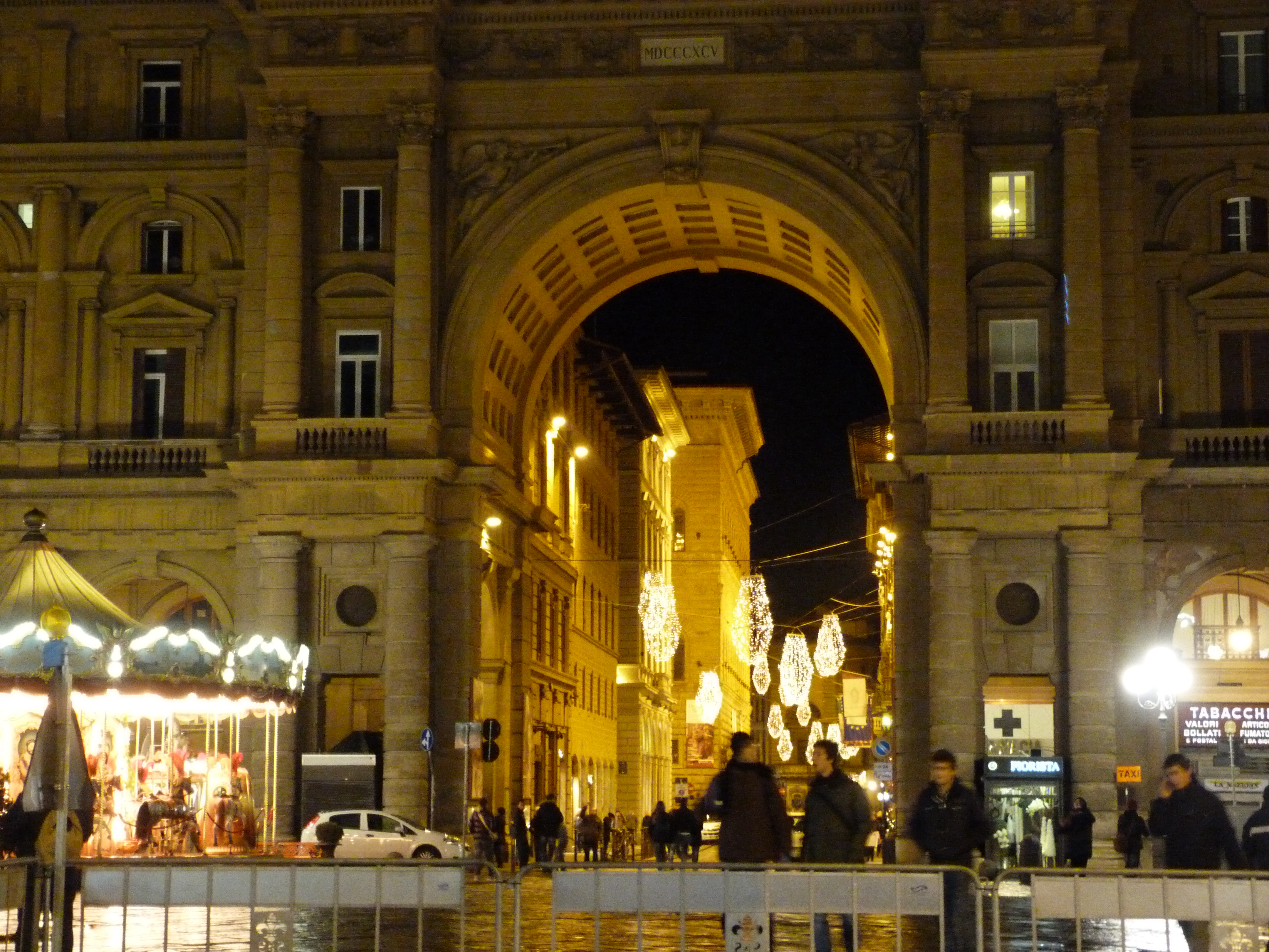 As we headed to the train station, wet and weary, we realized how little of Siena we had seen. It will have to wait for another trip, and a sunny day. We arrived back to the dry streets of Florence, under holiday lights, ending our glorious family holiday with a final dinner with Xan and Meghan before they made their way back to the ice and snow of Canada.